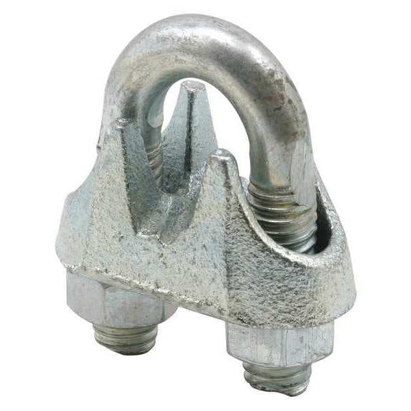 Cable Clamp, Cable Clamp, Half Clip, Steel, Cable Clamping Dia. 3/8 in, Mounting Hole Dia. 0.375 in, Clamp Thickness 0.05 in, Clamp Band Width 1 1/4 in, Natural, Natural Clamp Finish, Galvanized Aluminum Coating Material, 1 Pair
