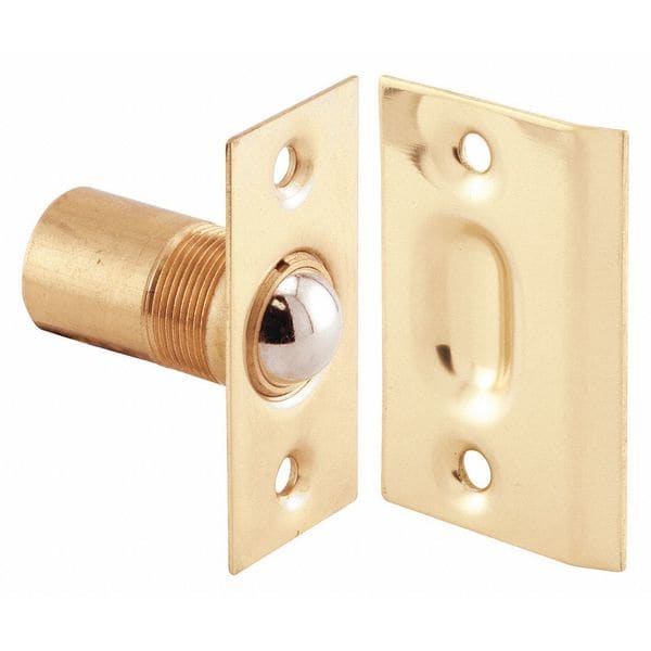 Closet Door Ball Catch/Strike, Sliding Door, Nylon, Metallic Brown, Brass Plated Finish, Shaft Length 1-1/4 In., Length (In.) 3-3/4, Height (In.) 5-23/64, Width (In.) 3-3/4, Depth (In.) 1-1/4, Wheel Diameter 1 In., Roller Width/Dia. (In.) No Roller, Door Mounting, Mounting Hole Size (In.) 3/16, Steel Bearings, Number of Wheels 0, Steel, Hardware Included, Requires Hardware, For Use With Closet Door
