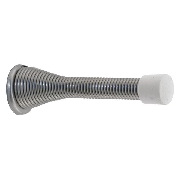 Door Stop, 3 in. Reach, Spring Steel, Satin Nickel, Heavy Duty, PK5