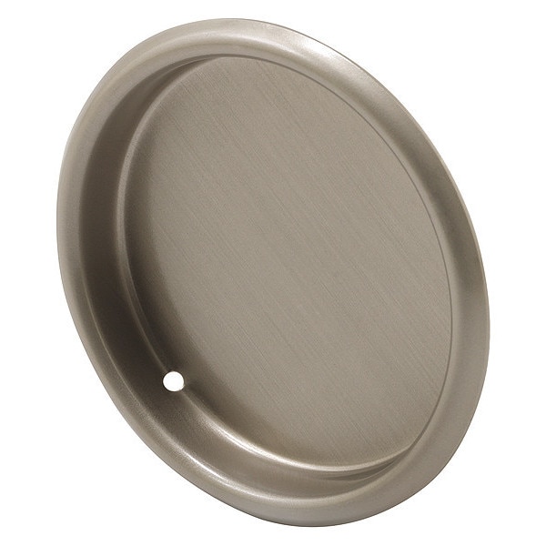 These mortise cup closet door pulls are constructed of stamped steel and they come in a satin nickel finish. The outside diameter of these pulls measures 2-1/8 inch and they have a depth of 5/16 inch. These mortise cups rest flush in the door and are used on by-passing closet panel doors to provide a pull for ease of opening and closing, and they are used by many manufacturers. This item includes 5 pulls and 10 nails per pull. Installation tip: to avoid damaging the pulls during installation; use a pair of needle nose pliers to hold the nails while hammering, then finish driving the nails with a nail set to seat them in place.