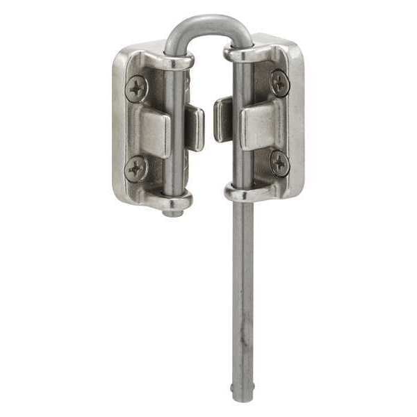 Sliding Door Lock, Loop, Stainless Steel Finish, Bolt Hole Dia. (In.) 3/16, Max. Latching Distance (In.) 13/16, For Door Thickness (In.) 3/16, 1/8, 1/4, For Use With Showcase Sliding Doors, Includes Keeper, (2) Installation Screws
