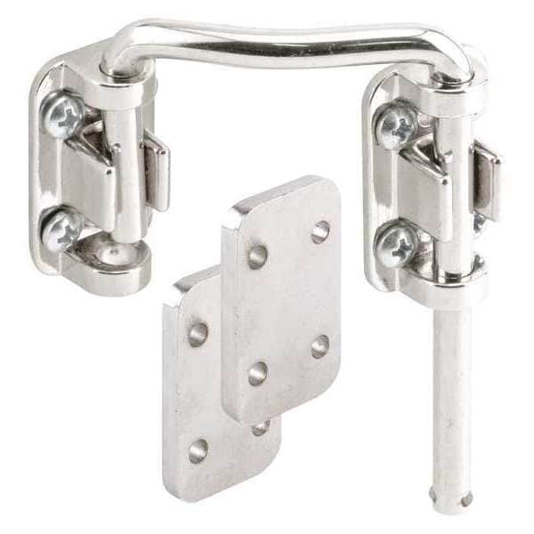 Sliding Door Lock, Barrier, Nickel Plated Finish, Bolt Hole Dia. (In.) 3/16, Max. Latching Distance (In.) 2-1/4, For Door Thickness (In.) 3/16, 1/8, 1/4, For Use With Showcase Sliding Doors, Includes Keeper, 2 Shims, (2) Installation Screws