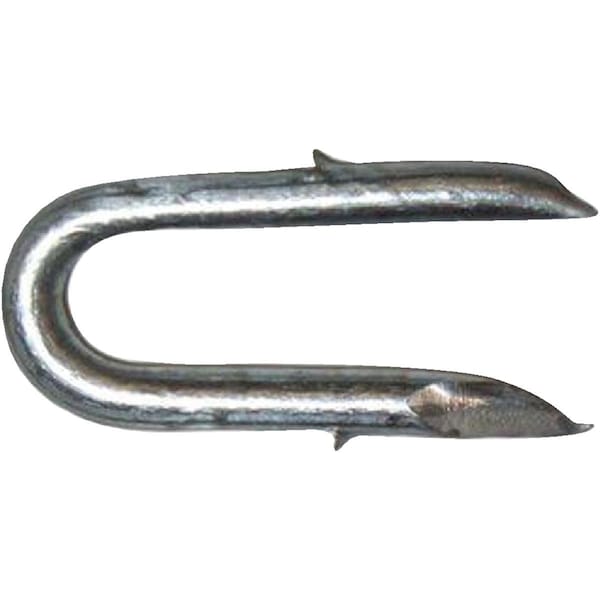 Hot galvanized single-barbed 8 gauge fence staple. This heavy-duty staple features a fish hook type barb for superior holding power. Used primarily for securely attaching wire and fencing to wooden posts.