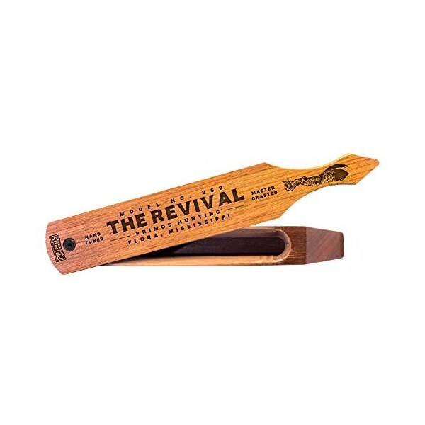 The Primos Revival is a long box that can be run loud or soft for prospecting or finishing a bird that last little bit Loud high pitch long yelps and cuts for prospecting and locating birds is easy with the long paddle and trough Also, use to finish off a bird with soft yelps or purrs Primos PS262 010135002626