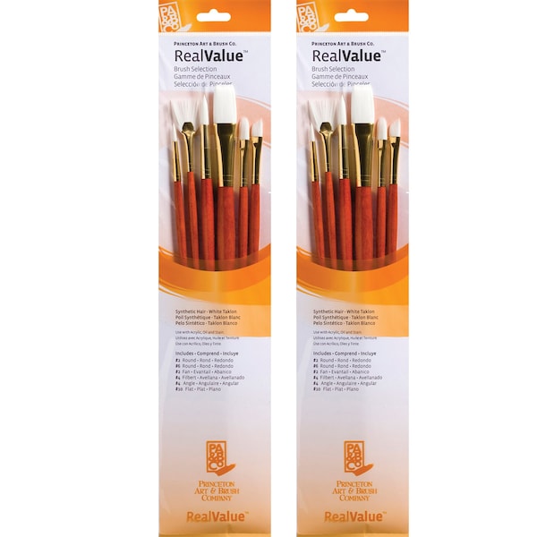 Princeton Artist Co. proudly presents the RealValue paintbrush collection-a curated series of meticulously selected brush sets that cater to every artistic need. Whether you prefer short-handle or long-handle styles, natural, synthetic, or a blend of bristles, the RealValue collection offers an unparalleled range of shapes and sizes. Designed to meet the demands of artists across all mediums-acrylic, watercolor, tempera, and oil-these brushes deliver exceptional mixed media performance at an incredible value. With RealValue, you'll find the perfect brush set to elevate your craft, whether you're just beginning or are a seasoned professional. Each set includes 6 brushes. Sold as 2 sets for a total of 12 brushes.