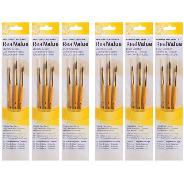 Princeton Artist Co. proudly presents the RealValue paintbrush collection-a curated series of meticulously selected brush sets that cater to every artistic need. Whether you prefer short-handle or long-handle styles, natural, synthetic, or a blend of bristles, the RealValue collection offers an unparalleled range of shapes and sizes. Designed to meet the demands of artists across all mediums-acrylic, watercolor, tempera, and oil-these brushes deliver exceptional mixed media performance at an incredible value. With RealValue, you'll find the perfect brush set to elevate your craft, whether you're just beginning or are a seasoned professional. Each set includes 3 brushes. Sold as 6 sets for a total of 18 brushes.
