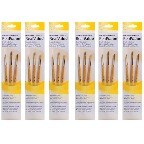 Princeton Artist Co. proudly presents the RealValue paintbrush collection-a curated series of meticulously selected brush sets that cater to every artistic need. Whether you prefer short-handle or long-handle styles, natural, synthetic, or a blend of bristles, the RealValue collection offers an unparalleled range of shapes and sizes. Designed to meet the demands of artists across all mediums-acrylic, watercolor, tempera, and oil-these brushes deliver exceptional mixed media performance at an incredible value. With RealValue, you'll find the perfect brush set to elevate your craft, whether you're just beginning or are a seasoned professional. Each set includes 3 brushes. Sold as 6 sets for a total of 18 brushes.