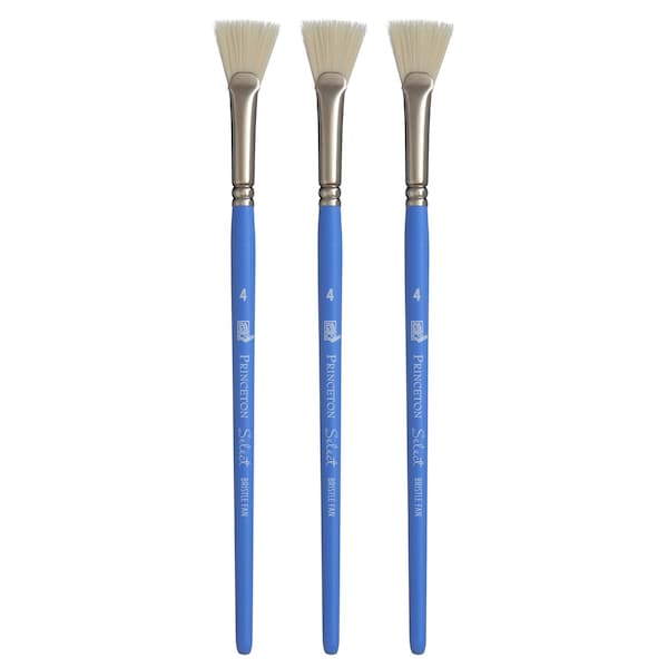 Select Artiste Bristle Fan Brush, Synthetic, Short Handle Mixed Media, Size 4, 3PK