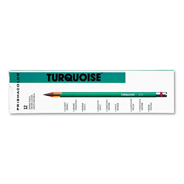Prismacolor® Turquoise Drawing Pencil, 2 mm, 6B, Black Lead, Turquoise Barrel, Dozen