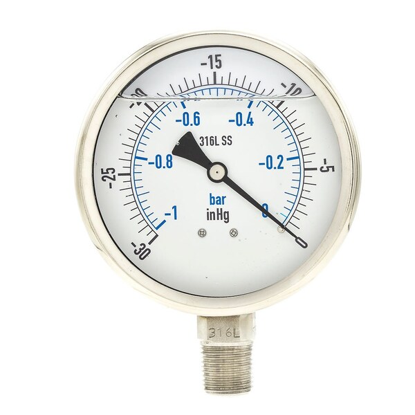 PRESSURE GAUGE, 4 in DIAL, 0-400 PSI, 1/2 in LOWER BACK MOUNT, STAINLESS STEEL CASE, 316SS INTERNALS, PANEL MOUNT FRONT FLANGE, WELDED CONNECTION, DRY/FILLABLE