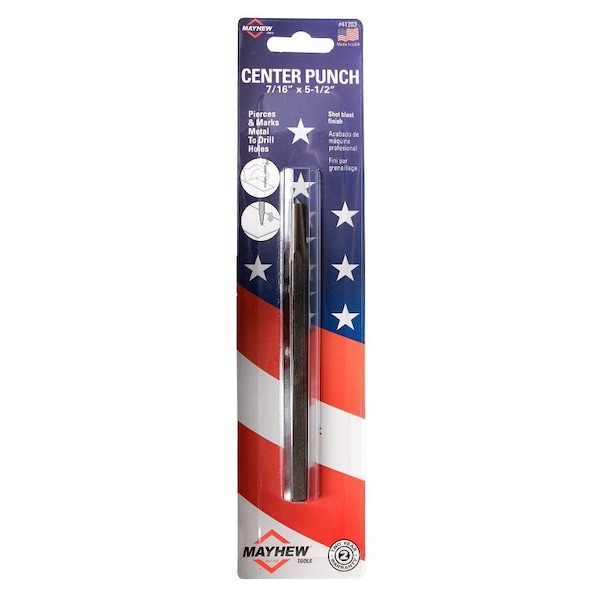 Center Punch, 7/16 in Tip, 5 in L, Hex Shank