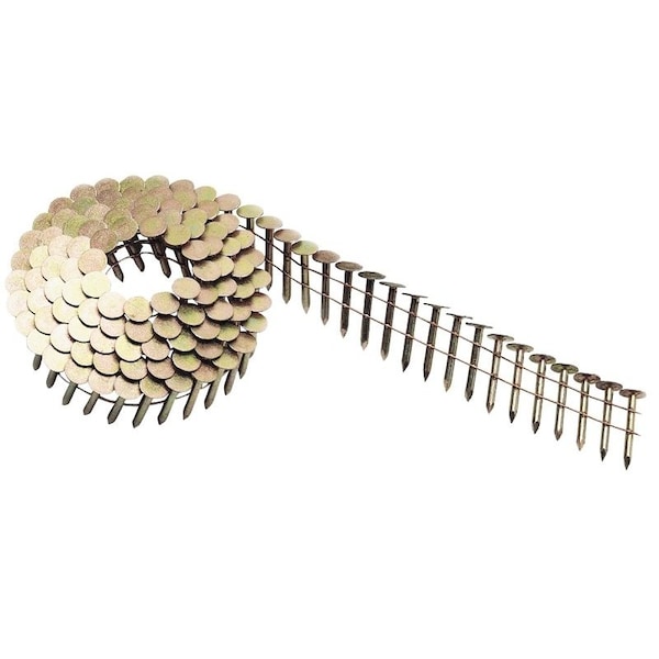 Collated Roofing Nail, 1-1/4 in L, Galvanized, Round Head, 15 Degrees, 7200 PK