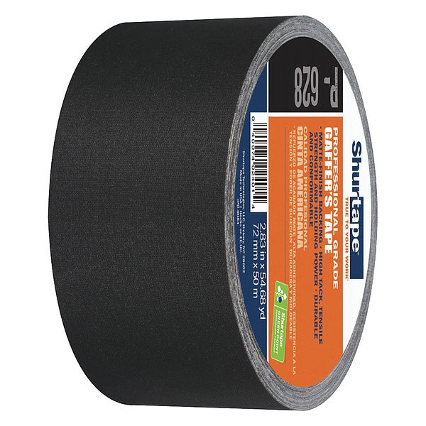 Adhesion to Steel 75 oz/in, Tape Brand SHURTAPE, Clean Removal Time Not Applicable, General Maintenance and Repair, Environment Indoor, Imperial Tape Length 54 5/8 yd, Imperial Tape Width 2 7/8 in, Continuous Roll, Series P- 628, Tape Adhesive Material Rubber, Tape Backing Material Polyethylene Coated Cloth, Tape Color Black, Tape Thickness 10.75 mil, Gaffer's Tape, Maximum Tape Performance Temperature 180 Degrees F, Metric Tape Length 50 m, Metric Tape Width 71.9 mm