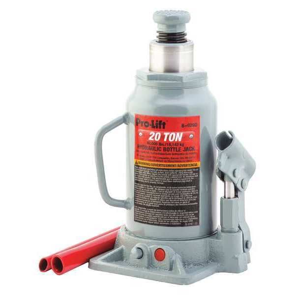 Bottle Jack,Hydraulic,20 tons, Load Capacity 20 ton, Body Material Steel, Lifting Actuator Manual Handle, Minimum Lift Height 9 1/2 in, Maximum Lift Height 18 3/4 in, Power Source Mechanical, Standards ASME, PASE, Base Length 5 1/2 in, Base Width 5 3/8 in, Extension Screw Length 1 5/8 in, Features Extension Screw Adjusts to Accommodate Work Height, Heat Treated Critical Stress Areas, Ideal for Auto, Truck Service, Farm, and Shop Use, By-Pass Device Protects Against Over-Pumping