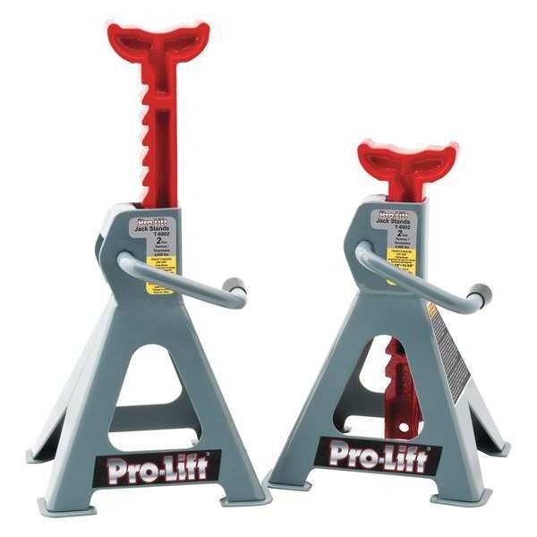 Jack Stands,Stamped,2 tons, Load Capacity per Pair 2 ton, Minimum Height 10 1/8 in, Maximum Extended Height 16 3/8 in, Base Material Steel, Locking Type Ratchet/Crank Handle, Standards ANSI/ASME PALD, Base Length 7 in, Features Ideal for Auto, Ideal for Farm, Ideal for Shop, Ideal for Truck Service