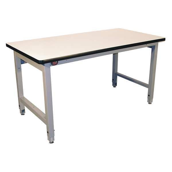 Workbench, Height Adjustability Adjustable Height, Top Material Laminate, Assembly Unassembled, Color Gray, Frame Material Steel, Leg Type Straight Leg, Maximum Adjustable Height 36 in, Minimum Adjustable Height 30 in, Non-Metal Top Thickness 1 1/4 in, Number of Cabinets 0, Number of Drawers 0, Number of Knockouts 0, Included Components Stringer, Number of Shelves 0, Overall Depth 30 in, Overall Fixed Height Not Applicable, Overall Load Capacity 5,000 lb, Overall Width 72 in