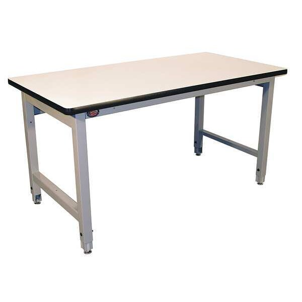Workbench, Height Adjustability Adjustable Height, Top Material Laminate, Assembly Unassembled, Color Gray, Frame Material Steel, Leg Type Straight Leg, Maximum Adjustable Height 36 in, Minimum Adjustable Height 30 in, Non-Metal Top Thickness 1 1/4 in, Number of Cabinets 0, Number of Drawers 0, Number of Knockouts 0, Included Components Stringer, Number of Shelves 0, Overall Depth 36 in, Overall Fixed Height Not Applicable, Overall Load Capacity 5,000 lb, Overall Width 72 in