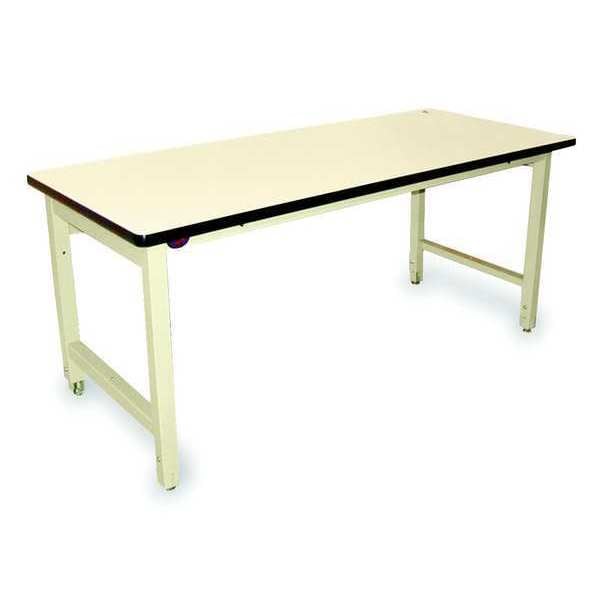 Workbench, Height Adjustability Adjustable Height, Top Material Laminate, Assembly Unassembled, Color Beige, Frame Material Steel, Leg Type Straight Leg, Maximum Adjustable Height 36 in, Minimum Adjustable Height 30 in, Non-Metal Top Thickness 1 1/4 in, Number of Cabinets 0, Number of Drawers 0, Number of Knockouts 0, Included Components Stringer, Number of Shelves 0, Overall Depth 36 in, Overall Fixed Height Not Applicable, Overall Load Capacity 5,000 lb, Overall Width 72 in