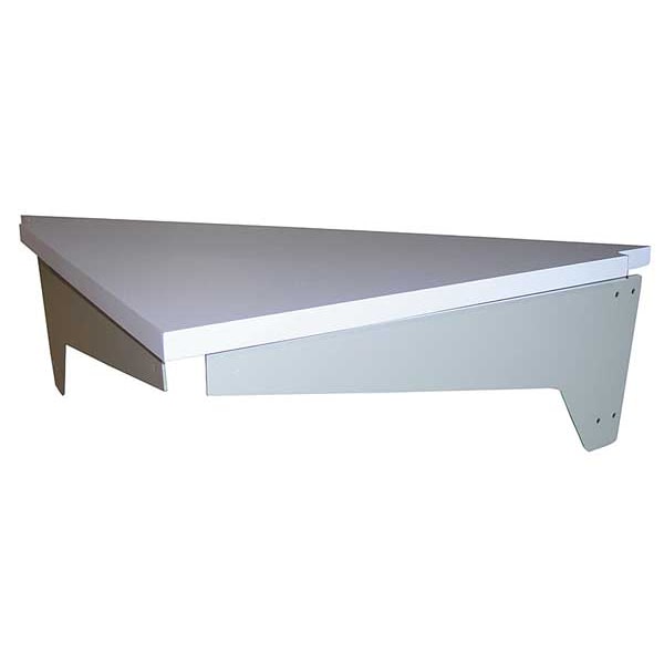 Workstation Corner Unit, Shelf Type Corner Unit Shelf, Assembly Unassembled, Color Gray, For Use With 30 in D Laminate Workbenches, Frame Material Steel, Frame Material Finish Powder Coated, Includes Plastic Laminate Work Surface, Includes Mounting Hardware Yes, Metal Material Gauge 14 ga, Mount Type Bracket, Number of Knockouts 0, Number of Outlets 0, Overall Depth 30 in, Overall Fixed Height 6 in, Overall Load Capacity 500 lb, Overall Width 30 in, Top Material Laminate