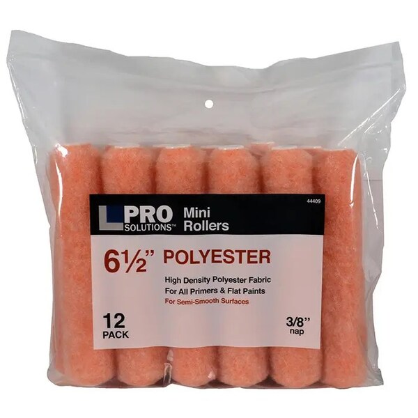 Pro Solutions Polyester Mini Roller is our project-grade roller cover containing high-density polyester fabric that delivers a smooth finish. Ideal for use on semi-smooth surfaces, with all low sheens of interior and exterior latex and oil-based paints, primers, stains, and clear finishes.