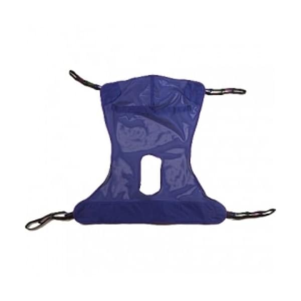 Full body sling that is compatible with the Invacare Reliant patient lifts. Features a commode opening, and supports up to a 600 lb weight capacity