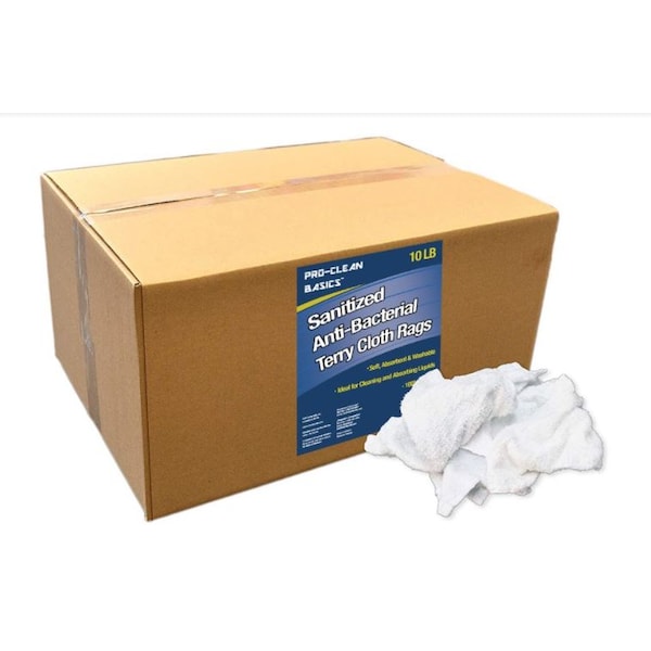 Sanitized Anti-Bacterial Terry Cloth Rag, White, 10lbs Bag
