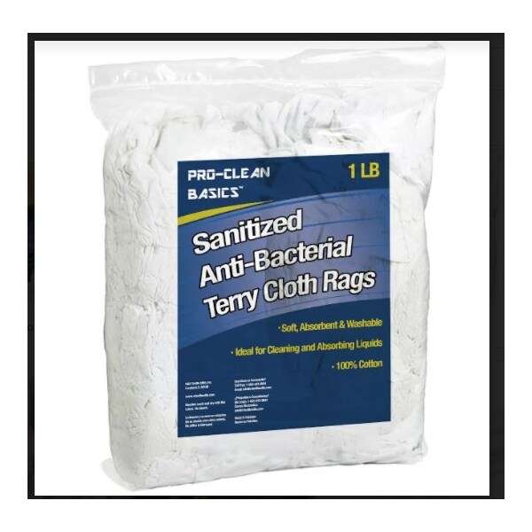 Sanitized Anti-Bacterial Terry Cloth Rag, White, 1lbs Bag
