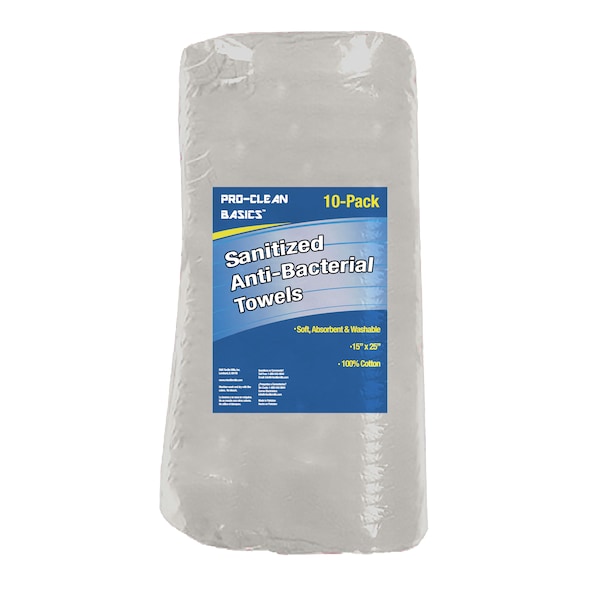 Sanitized Anti-Bacterial White Wiping Towel, 15" X 25", PK10