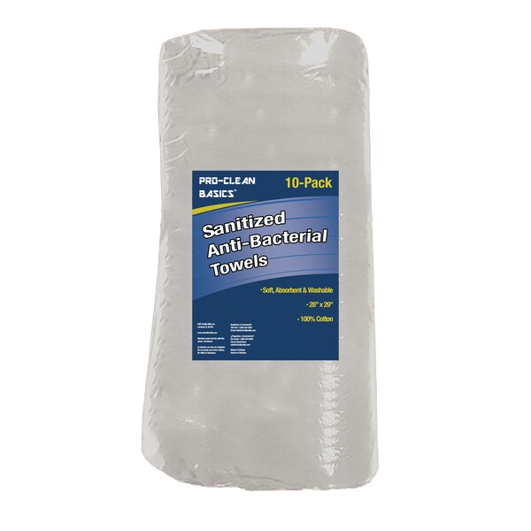 Sanitized Anti-Bacterial White Wiping Towel, 28" x 29", PK 10