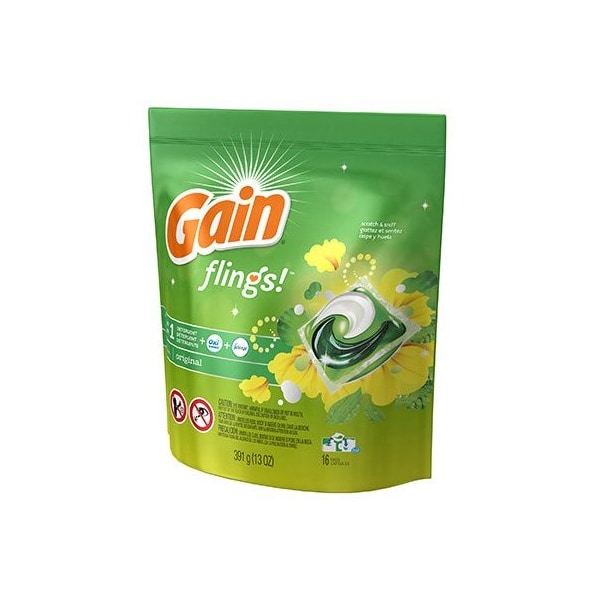16 Count, Original Scent Gain Flings, Unit Dose, Detergent Plus Oxi Boost Febreze Freshness, Designed To Give More Scent, Long Lasting Freshness More Cleaning Power, HE Compatible