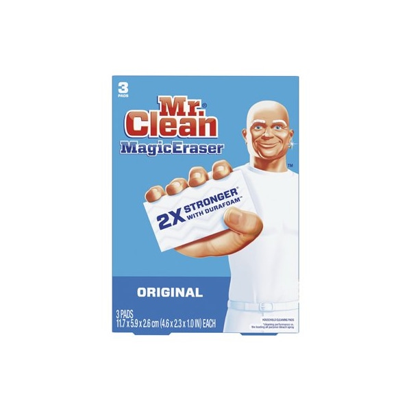 3 Count, Mr Clean Magic Eraser, Original, Will Help Your Walls, Baseboards, Floors, Switch Plates, Blinds More Look Like New Again By Easily Removing Scuff Marks Dirt, Simply Take A Swipe, Its Water Activated Micro Scrubbers Reach Into The Surface Grooves, Lifting Away Built Up Grease Soap Scum, So Powerful That Each Swipe Removes More Grime Than The Leading All Purpose Spray Cleaner, No Harsh Chemicals