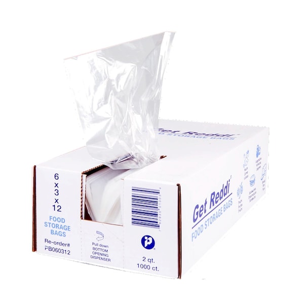 This is a clear transparent poly food bag made from .6 mil thick polyethylene material. It measures 6 inches in width, 3 inches in depth, and 15 inches in length, suitable for storing and protecting food items. The bag is designed for food storage applications, providing a moisture-resistant and durable barrier to maintain freshness. It is lightweight and flexible, allowing easy sealing and handling. This poly food bag is ideal for packaging, organizing, and preserving various food products while ensuring cleanliness and convenience, available in a pack of 1000.