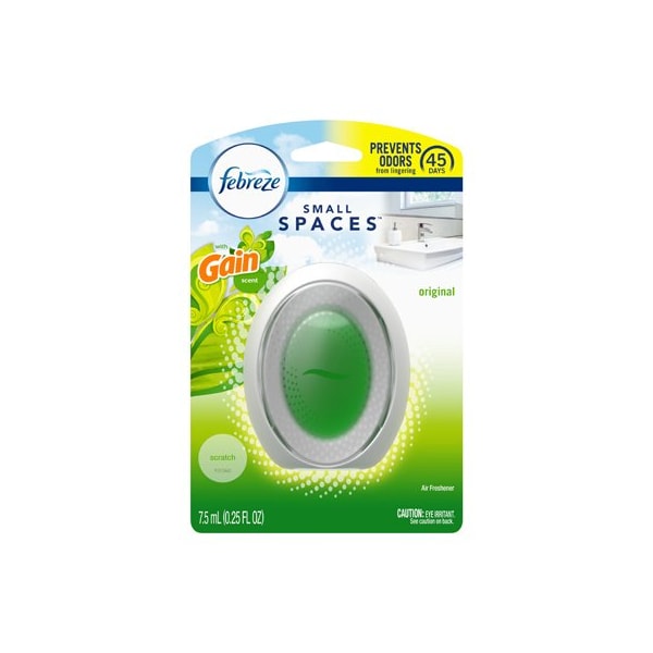 Febreze, 75 ml, Gain, Small Places Air Freshener, Eliminates Odors Prevents Them From Coming Back For Up To 45 Days, 1 Of A Kind Way To Keep Your Home's Spaces Smelling Continuously Fresh, Button On The Back Once To Activate It, Enjoy Up To 45 Days Of Freshness, Works Best In Small Spaces Like Bathrooms, Bedrooms, Closets, Laundry Rooms, Mudrooms, Great For Putting Next To Hampers, In Dorm Rooms, Under Sinks Near Shoes In Closets, Requires No Plugs Or Batteries, Sleek, Compact Design Fits Perfectly Into Any Decor Works Wonders From Bathrooms To Bedrooms