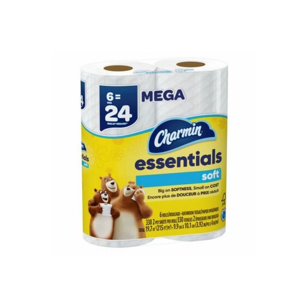 Charmin Essentials, 6 pack, Soft toilet paper 6 Mega Rolls per package 330 sheets per roll