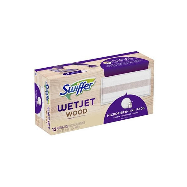 Swiffer WetJet, 12 Count, Wood Cleaning Pad, Specifically Engineered With Hardwood Floors In Mind, Soft Texture Of The Microfiber Like Cleaning Pads Are Gentle On Hardwood Floors, Absorb Lock Strip Locks Away Dirt Grime For Good