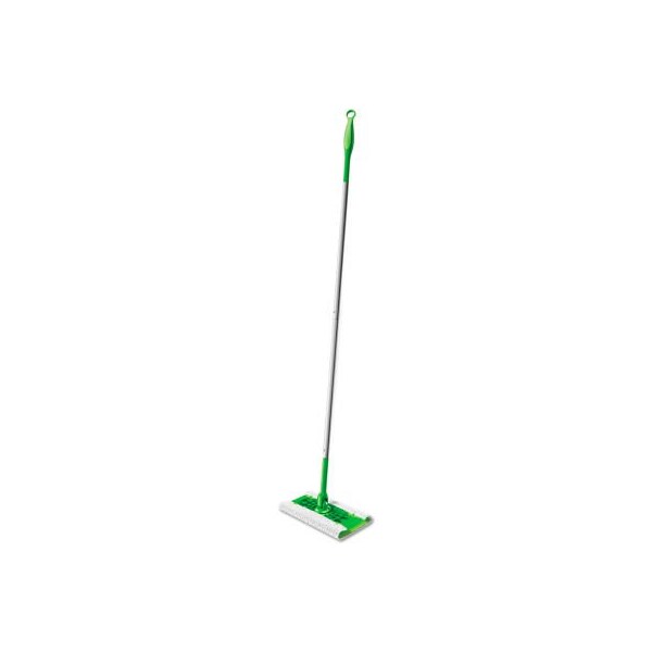 removes dust, dirt, hair and allergens from floors, furniture, electronics. Disposable swiffer cloths (sold separately) attach to lightweight swivel head. Mop breaks down into four parts for storage and to adjust length. Green, single mop. this product arrives to most customers in 2-3 business days.