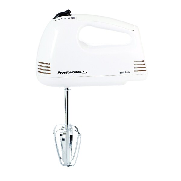 Proctor Silex hand mixers are reliable and convenient for all your baking and cooking needs. These lightweight mixers are designed for reliable power with five speeds ideal for mixing stirring beating and whipping. All models come equipped with traditional beaters and some models come with additional attachments and a case for easy storage.