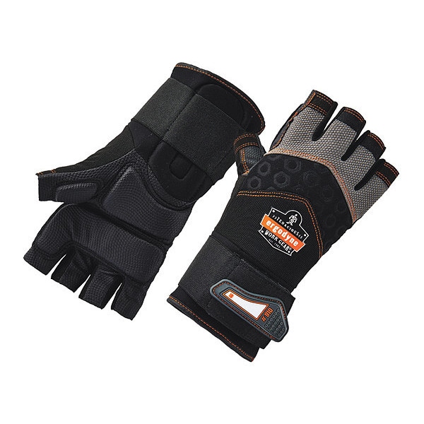 Glves,Hlf-Fngr,Impct,Wrst Spprt,Blk,M,PR, 1 Pair