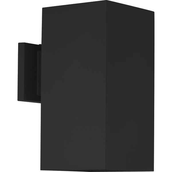 6" outdoor one-light wall square with heavy duty aluminum construction and die cast wall bracket. Powder coated finish. Black finish.