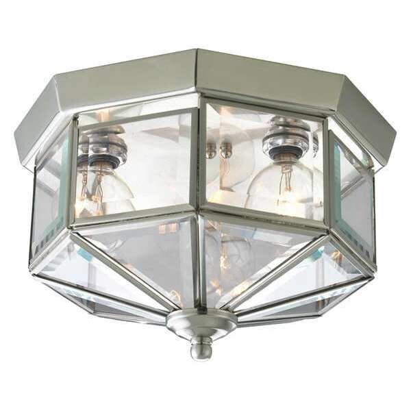 Beveled Glass 3-Light Close-to-Ceiling, 25 W, Brushed Nickel
