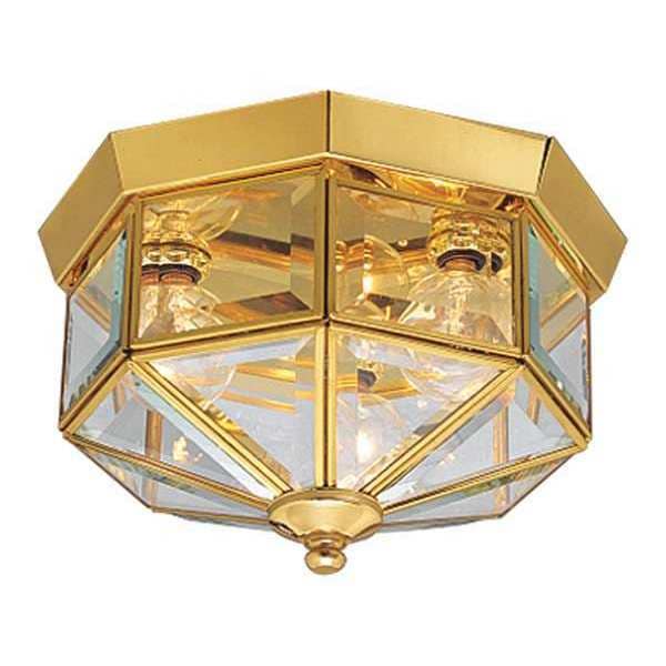 Beveled Glass 3-Light Close-to-Ceiling, 25 W, Polished Brass
