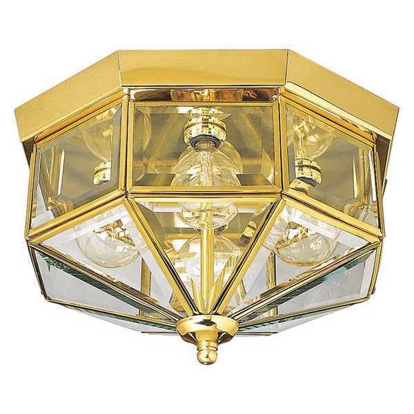 Beveled Glass 4-Light Close-to-Ceiling, 25 W, Polished Brass