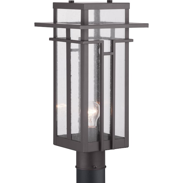 Geometric details in Boxwood’s design enhance Craftsman-inspired architecture. The one-light post lantern features clear seeded glass and finished in Architectural Bronze which completes the authentic style.