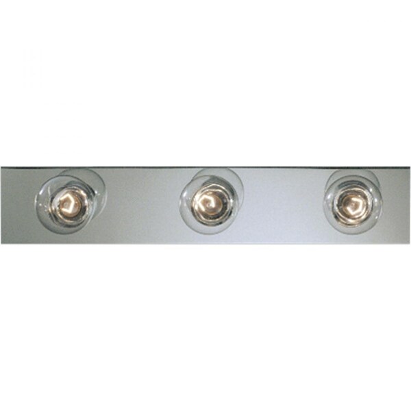 Basic Broadway Lighting strips use fewer lamps to lower the overall wattage per strip. This three-light bath strip with sockets on 7-1/2 inch centers gives an even spread of illumination. UL listed for ceiling mounting with 25w maximum lamps. Complete with a brilliant metallic finish.