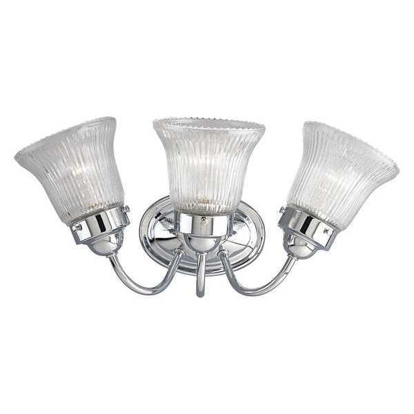 Economy Fluted Glass 3-Light Bath, 100 W, Polished Chrome