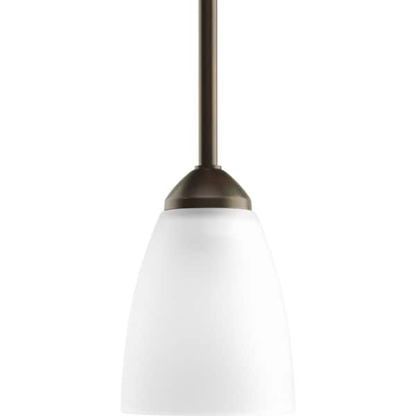 Gather possesses a smart simplicity to complement today's home. This one-light mini-pendant contains etched glass shades which add distinction and provide pleasing illumination to your room. Complimented by a Antique Bronze finish.