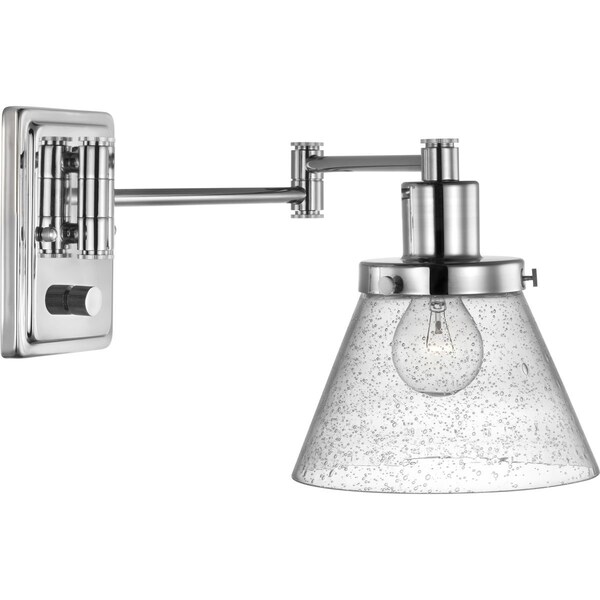 Enjoy focused task lighting with the industrial demeanor of this one-light swing arm wall bracket. A clear seeded glass shade is ready to provide you with focused task light wherever illumination is called upon. The light fixture's signature adjustable arm is coated in a polished nickel finish and makes this wall light a favorite choice for when you want to read your favorite novel before bed.