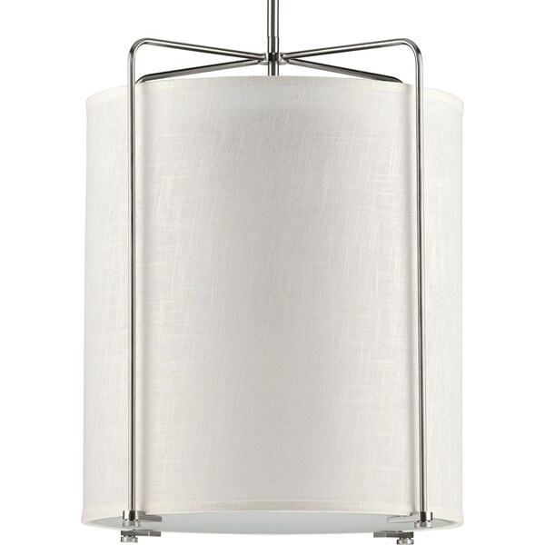 Gather the family together at a dining table or kitchen island for an end-of-the-day meal under the gentle, muted glow of the Kempsey three light pendant. Elongated, Brushed Nickel arms stretch to cradle the cylindrical, textured, Summer Linen shade. The fixture’s refreshing, understated design makes it an excellent choice for transitional and farmhouse settings.