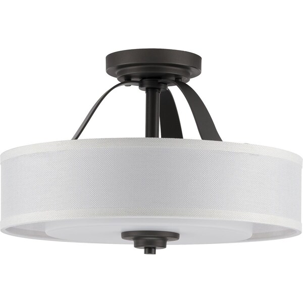Add a modern romance to the heart of your home with this lovely semi-flush mount. A quiet linen shade fosters a soft, luxurious touch. The shade is held in place by beautiful graphite arms that flow down from a round ceiling plate.