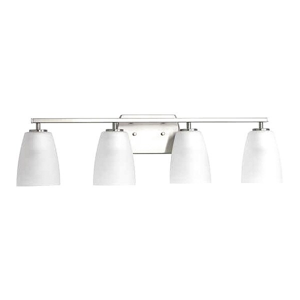Leap vanity fixtures feature tapered etched glass shades to complement contemporary design trends.